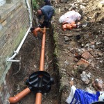 French Drains offer an alternative solution for those customers not wanting or unable to install a soakaway at their property. Using new PVC pipework the surface water is directed away from the property and into perforated pipework buried underground. The trench in which the perforated pipe sits, is lined with a barrier material and the pipework set central, surrounded by 20mm clean stone and buried. The stone allows the water to disperse into the ground more efficiently, eliminating Damp caused by standing water around the property.